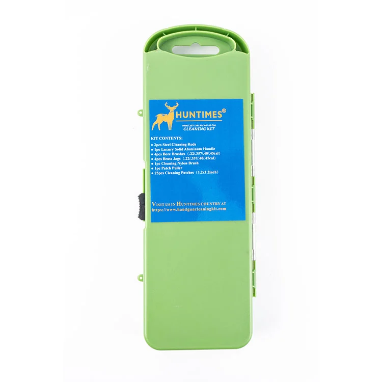 9mm / .357 / .357 / .38 / .44 / .444 / .44 / .45 kalibrli təmizləyici dəsti tapançanız üçün hazırlanmış və OEM xüsusi tutma loqotipi və qablaşdırma xüsusiyyətləri. Bu çox yönlü təmizlik dəsti ov həvəskarları üçün mükəmməldir və xüsusi ehtiyaclarınıza uyğun bir sıra aksesuarlarla gəlir. Kit iki pirinç təmizləyici çubuq, davamlı plastik sapı, təmizləyici bir neylon fırçası, iyirmi beş təmizləyici yamaq, müxtəlif kalibrlərin dörd kamera fırçası, dörd pirinç serroveri, plastik yamaq pulleri və pirinç patcher.