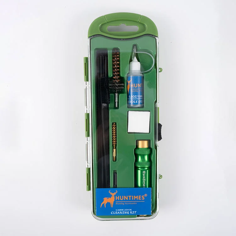 Bu Şanxay Ovçuluq Sürət Sənayesi və Ticarət Co, Ltd-nin 5.56mm 223 kalibrli silah təmizləyici dəsti möhkəm bir alüminium sapı və davamlı alüminium ərintisindən hazırlanmışdır. Buraya dörd polad təmizləyici çubuğu, 5.56mm güllə üçün bir ulduz kamerası, bir kamera fırçası daxildir .223 kalibrli, bir .223 kalibrli bir patcher və 15ml boşluq şüşəsi üçün bir patcher. Aksesuarlar da təmizləyici neylon fırça, 25 təmizlik yamaları və bir deluxe alüminium sapı ilə gəlir. Bu dəst, AR silah ovçuluq üçün aksesuarın təmizlənməsi ehtiyacınız üçün idealdır.