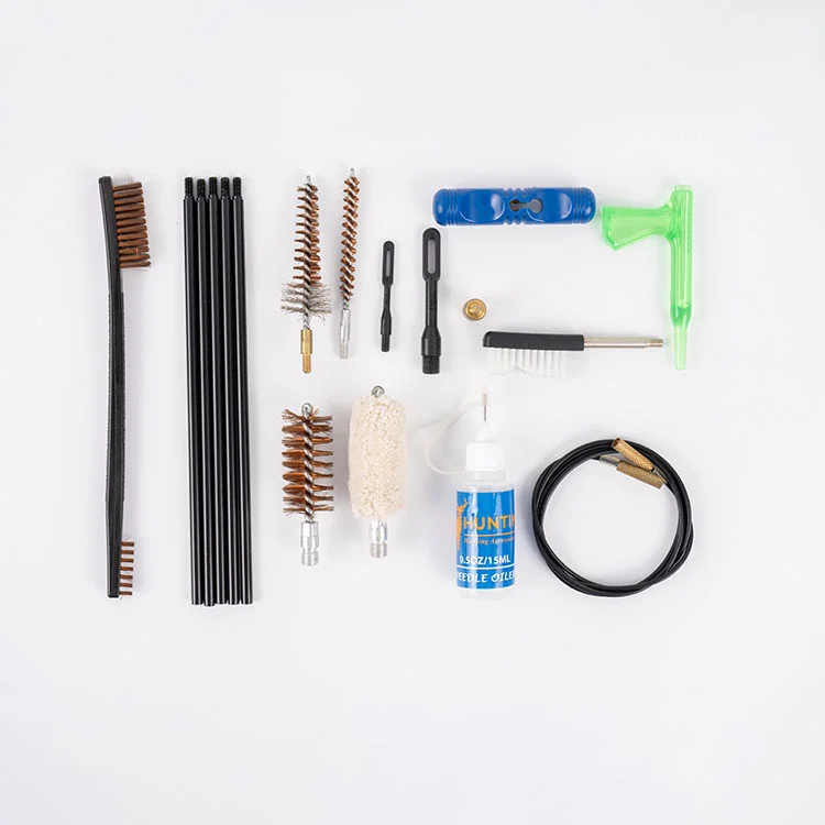 Ovçuluq cihazlarını qorumaq üçün daha əhatəli aksesuarlara ehtiyac duyan ovçuların və silah həvəskarlarının ehtiyaclarını nəzərə alsaq, OEM portativ Eva daxili tepsisi AR və tüfəng təmizləyici dəsti hazırladıq. Kit 5,56mm, .223Cal və 12qa daxil olmaqla müxtəlif kalibrlərlə uyğun gəlir. Xüsusi dizayn edilmiş bir qol, 3 növ buruq fırçaları (12qa, .2223cal və 5.56mm üçün), 3-in-1 üçün), bir mop (12), pirinç təmizləyici fırça, bir patch çəkmə, bir polad adapter və təmizləyici yamaq. Bundan əlavə, yağlama üçün boş bir yağ şüşəsi və 39 düymlük 8-32 iplik kabel daxildir. Bu aksesuarların hamısı asan nəqliyyat və saxlama üçün rahat bir Eva daxili tepser çantasına yığılır.